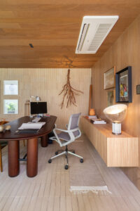 Um espaço de autenticidade – O novo escritório do arquiteto goiano Marcos Lula é exatamente assim: um espaço que não grita, mas comunica; que não busca o impacto imediato, mas constrói significado. Uma arquitetura que acolhe, revela essência e traduz, com precisão rara, a maturidade de quem entende que o tempo é parte fundamental do processo criativo.