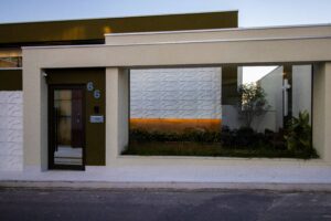 Nada aqui é excessivo; tudo é intencional. Cada plano, cada textura, cada escolha constrói uma fachada que dialoga com o paisagismo, com a cidade e com a essência leve do morar baiano.