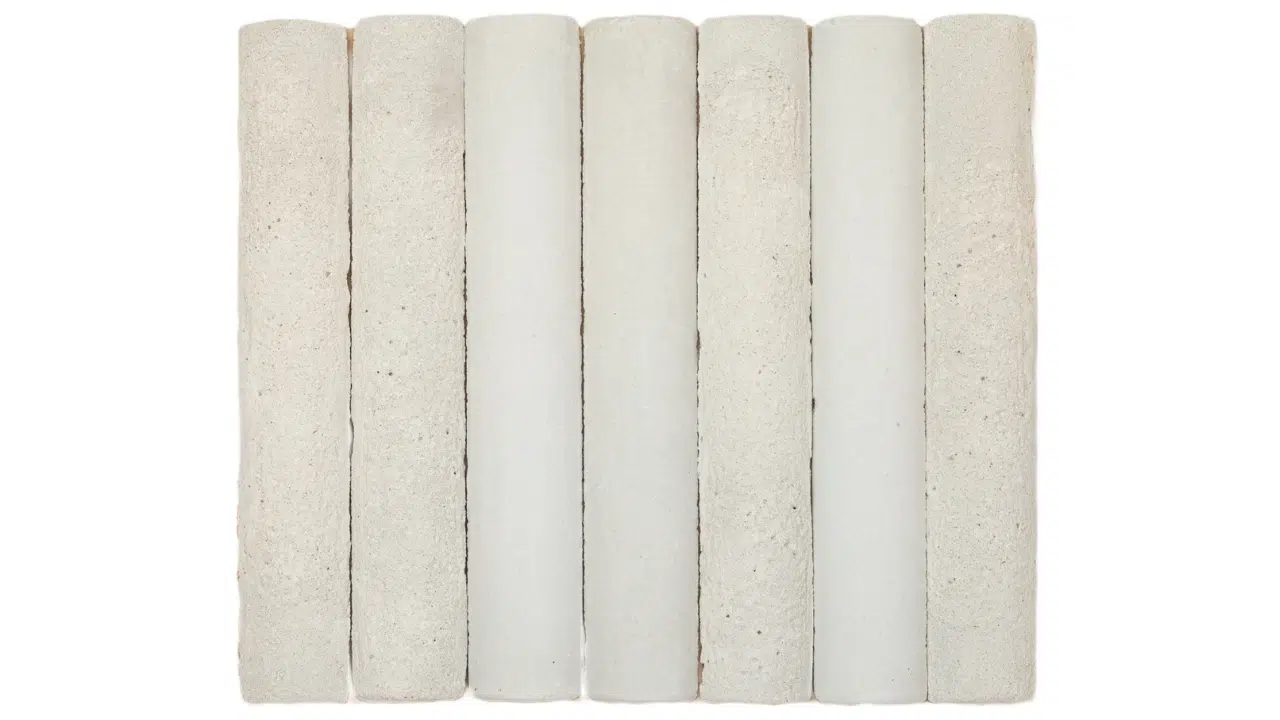 Peças feitas à mão em base argilosa, alongadas, de topo arqueado, submetidas a processos de cura e cuidadosa corrosão, agregadas em placas de 23×28 cm, que misturam com elegância o modelo Arco nas versões Anciano, mais homogênea, e Sedale, com aspecto mais desgastado, tendo como resultado um revestimento com textura única.