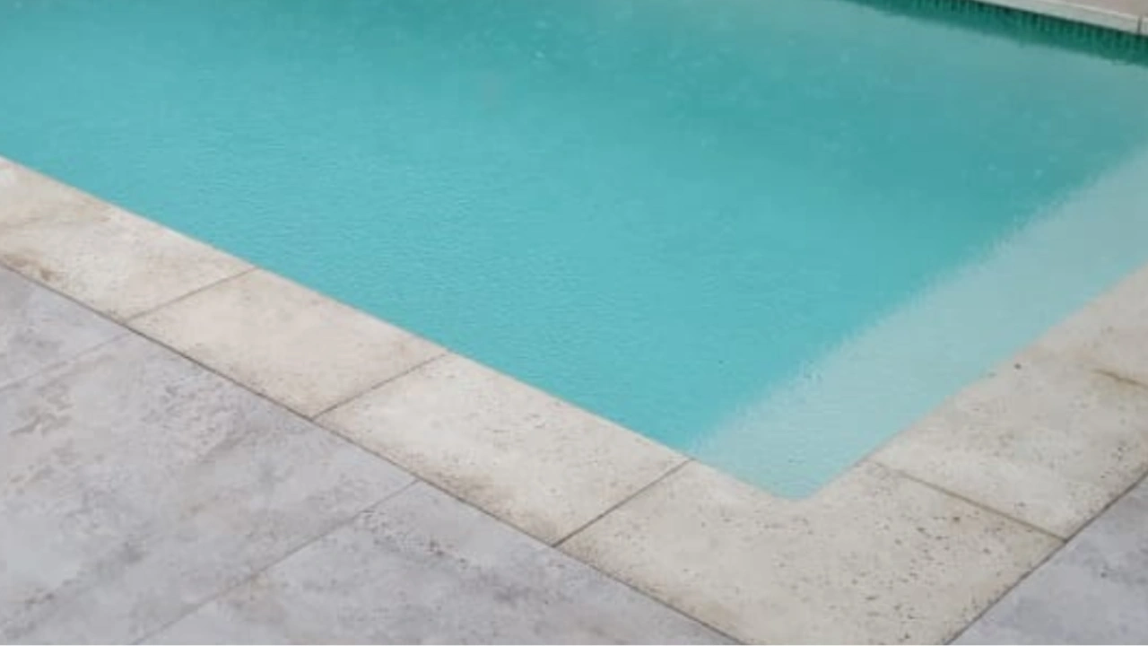 A BORDA PLANA EM NÍVEL permite o assentamento junto a piscina em nivelamento ao piso do entorno.