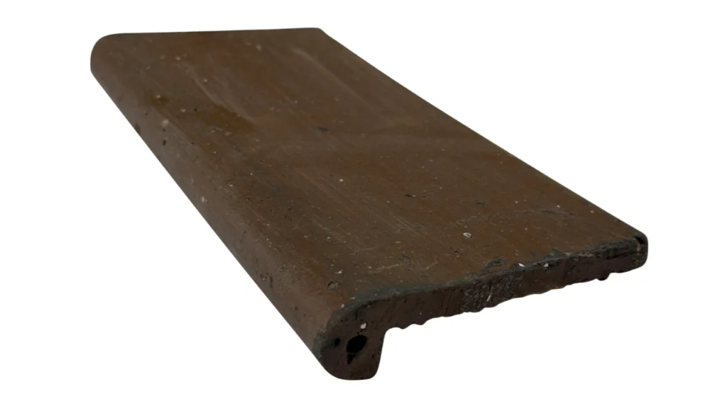 Borda em cerâmica natural, com variações típicas na tonalidade e superfície envelhecida com arestas levemente desgastadas com variações de tonalidade típicas originadas por processo de queima