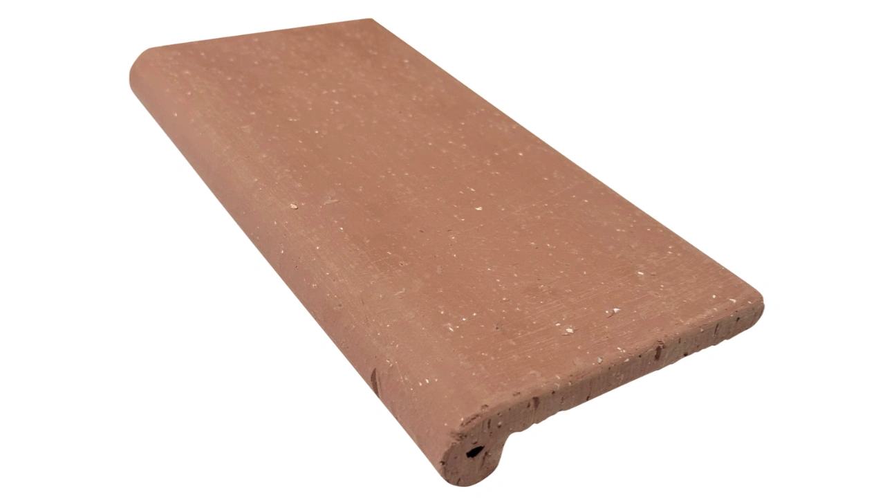 Borda em cerâmica natural, com variações típicas na tonalidade e superfície envelhecida com arestas levemente desgastadas com variações de tonalidade típicas originadas por processo de queima