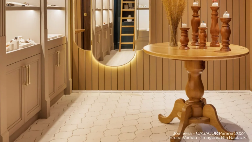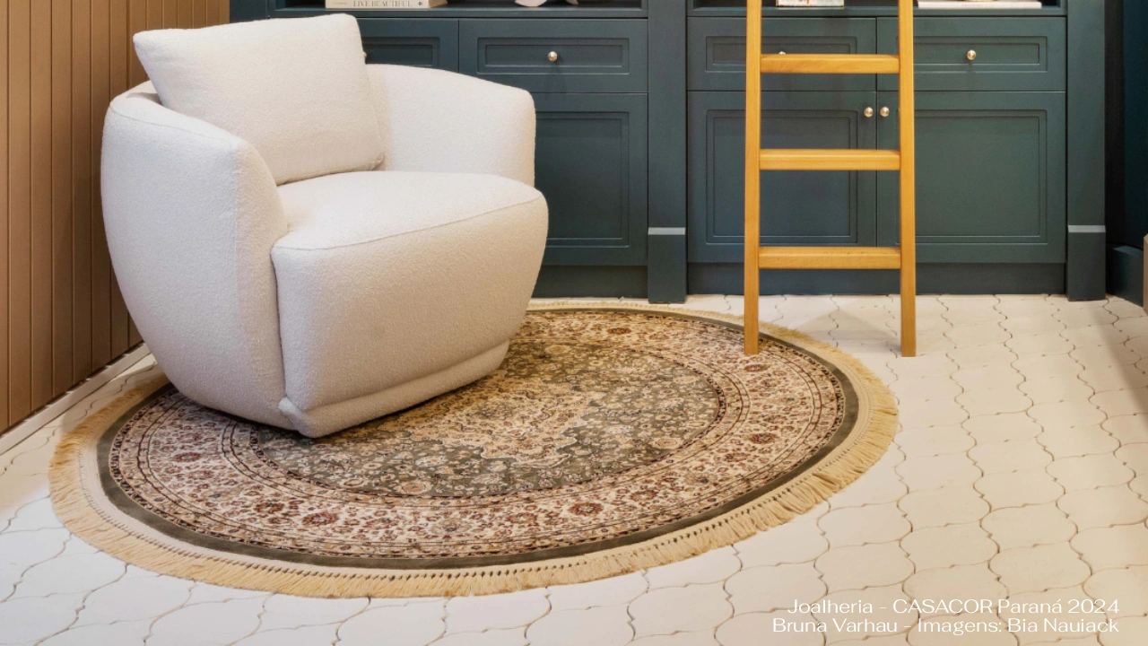 Peças com corte delicado, que remetem a formas usadas por artesãos italianos na produção dos eternos camafeus, com pedras esculpidas em sua superfície. Proporcionam um padrão visual elegante e atemporal, que dialoga com muitos outros estilos e elementos de design. Pode ser assentado em paginações que mesclam também peças do Camafeu Spazioso, sendo chamado de Camafeu Composizione