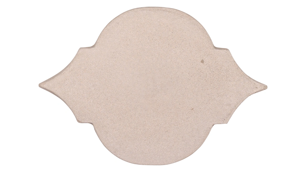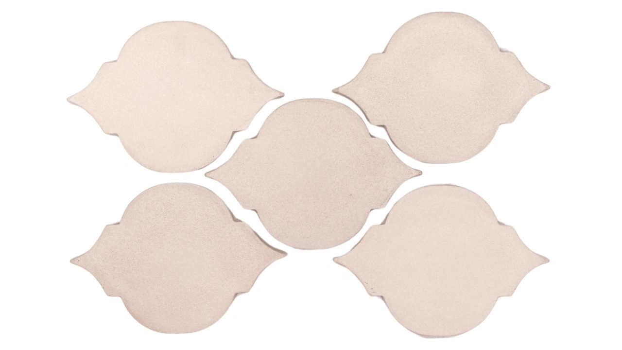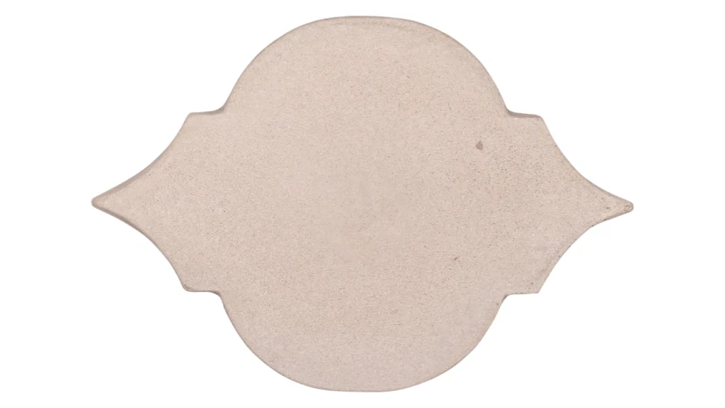 Peças com corte delicado, que remetem a formas usadas por artesãos italianos na produção dos eternos camafeus, com pedras esculpidas em sua superfície. Proporcionam um padrão visual elegante e atemporal, que dialoga com muitos outros estilos e elementos de design. Pode ser assentado em paginações que mesclam também peças do Camafeu Spazioso, sendo chamado de Camafeu Composizione