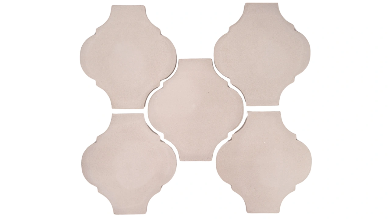 Peças com corte delicado, que remetem a formas usadas por artesãos italianos na produção dos eternos camafeus, com pedras esculpidas em sua superfície. Proporcionam um padrão visual elegante e atemporal, que dialoga com muitos outros estilos e elementos de design. Pode ser assentado em paginações que mesclam também peças do Camafeu Piccolo, sendo chamado de Camafeu Composizione