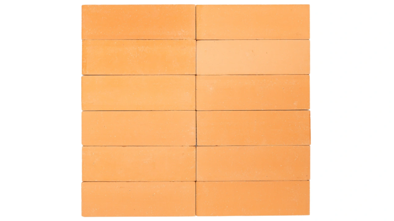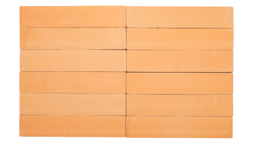 Peças em cerâmica natural com variações naturais de tonalidade resultantes dos processos de queima e envelhecimento. Seu acabamento especial é feito para favorecer o assentamento com junta seca – sem espaço para rejunte.