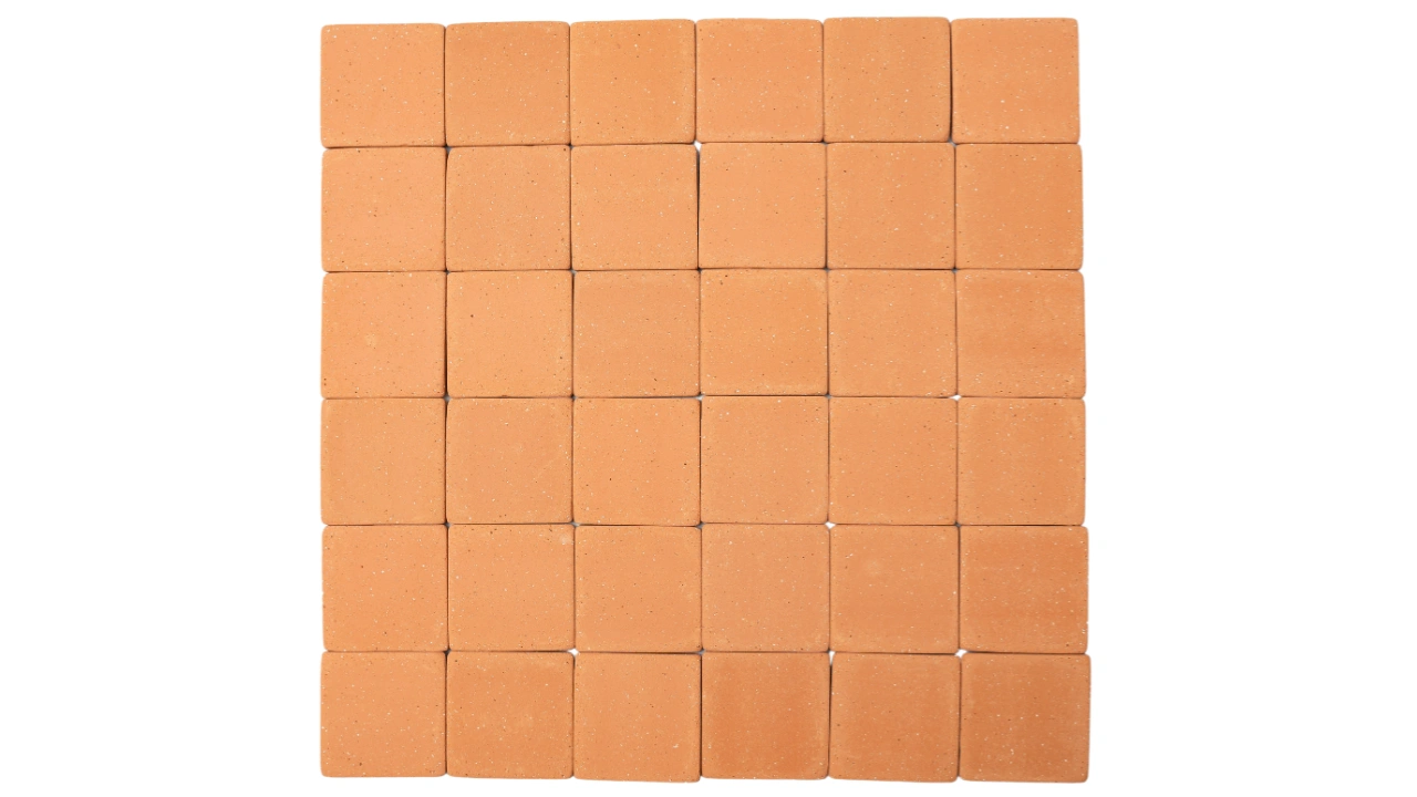 Peças em cerâmica natural, que passam por processo duplo de queima e cuidadosa corrosão controlada, resultando em superfícies e arestas de aspecto naturalmente envelhecido pela história e pelo correr do tempo.