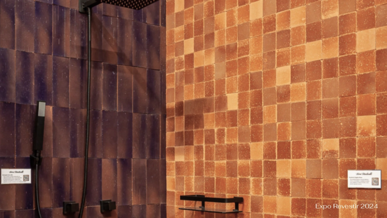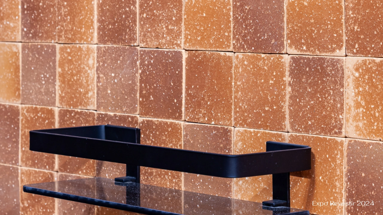 Peças quadradas dispostas em telas que exploram a nobreza, a ancestralidade e a brasilidade da cerâmica natural, agregada com materiais reciclados, as telas permitem paginações simétricas