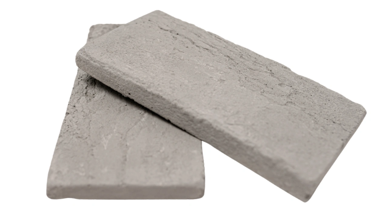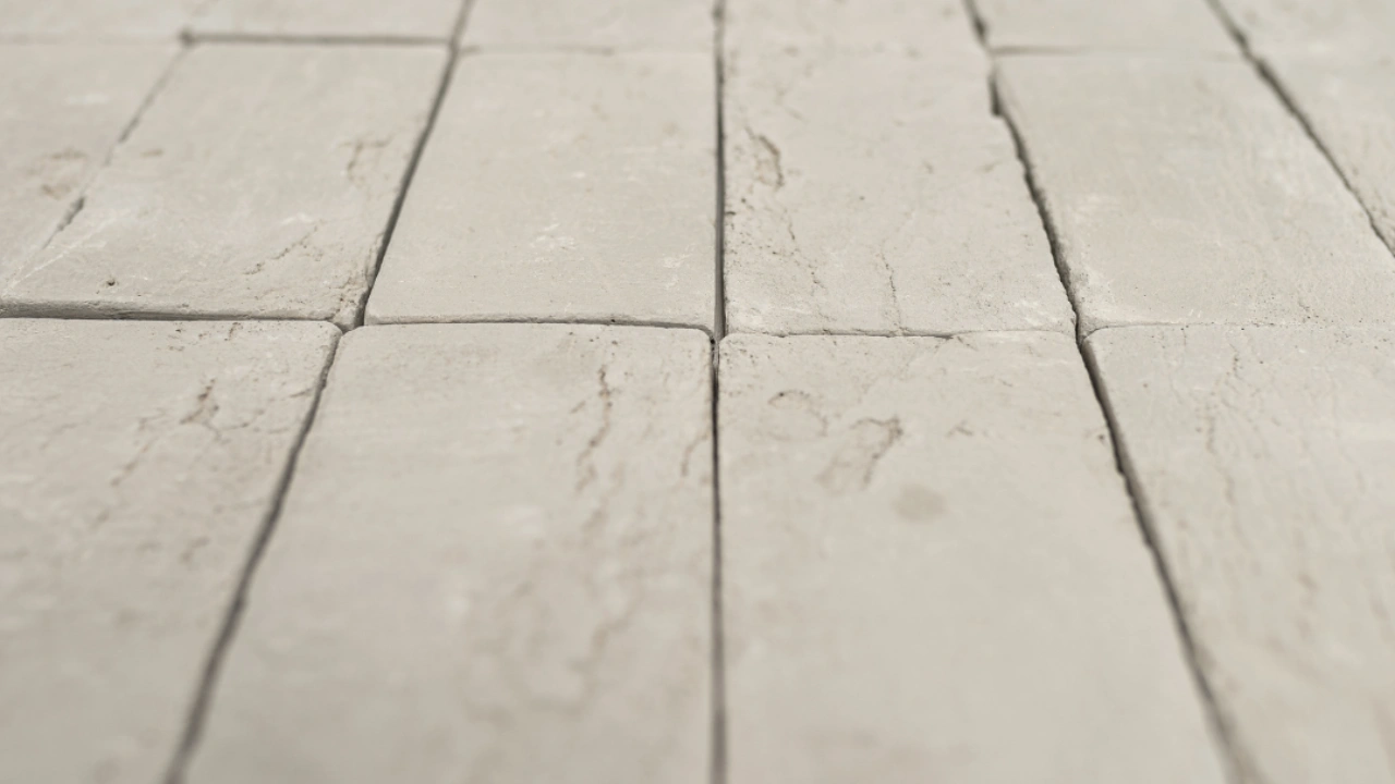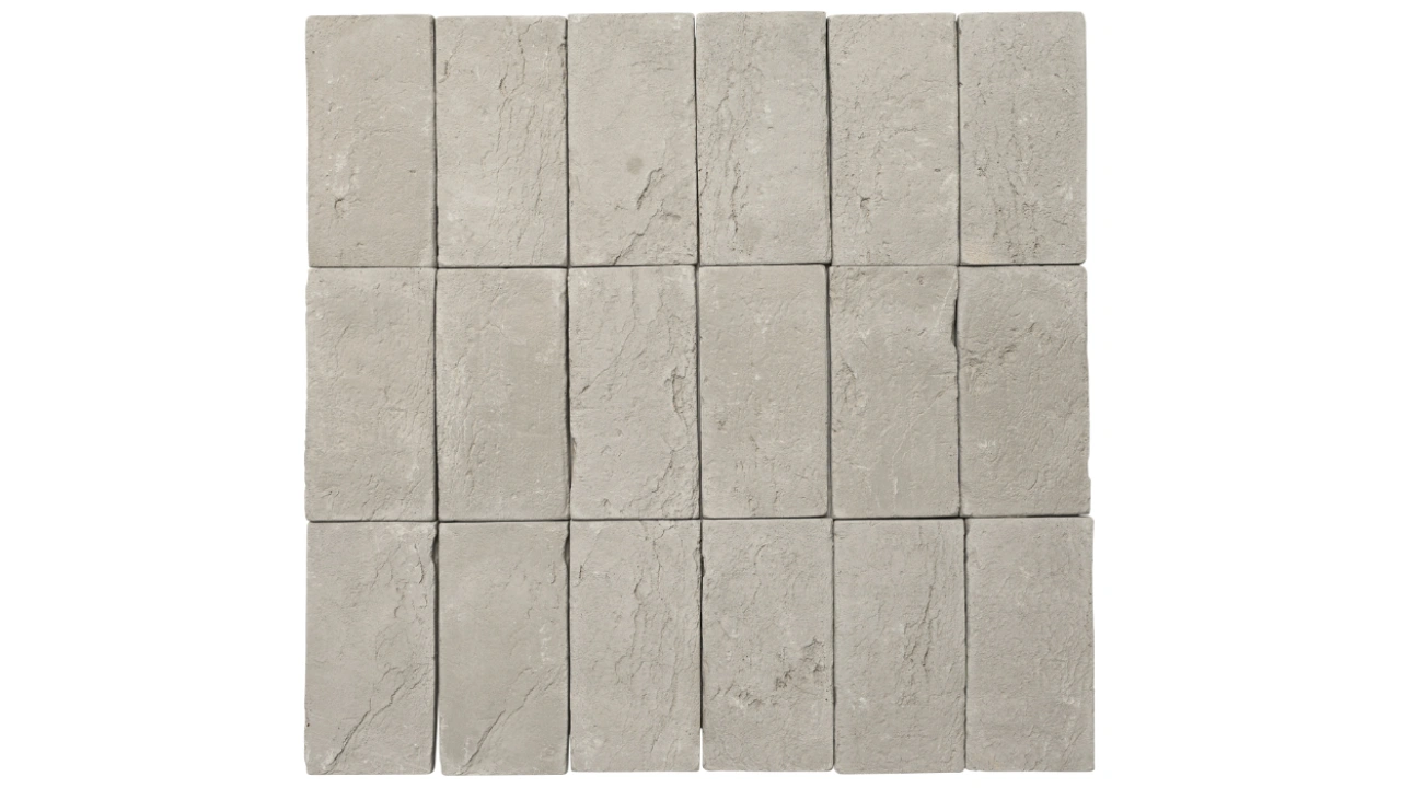 Peças medindo 9x18cm feitas uma a uma, com bordas regulares e superfície irregular que remete às paredes rochosas ou trilhas de rocha natural, com as variações de relevos esculpidas pela passagem do tempo ou pela fragmentação natural dos elementos. Confere beleza, força e naturalidade aos ambientes e com a paginação simétrica, amplia a sensação visual de aspecto orgânico.