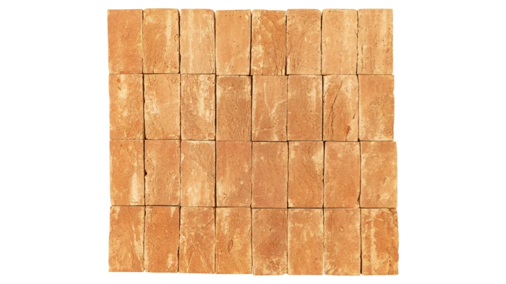Peças retangulares que exploram a nobreza, a ancestralidade e a brasilidade da cerâmica natural, agregada com materiais reciclados, permitindo paginações simétricas ou que exploram outros padrões visuais.