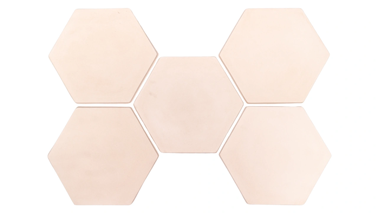 Peças em formato sextavado, que exploram a harmonia dessa figura geométrica, possibilitando a criação de um padrão visual clássico e, ao mesmo tempo, ousado. Rico e limpo, apropriado para dar leveza com diferenciação aos ambientes.