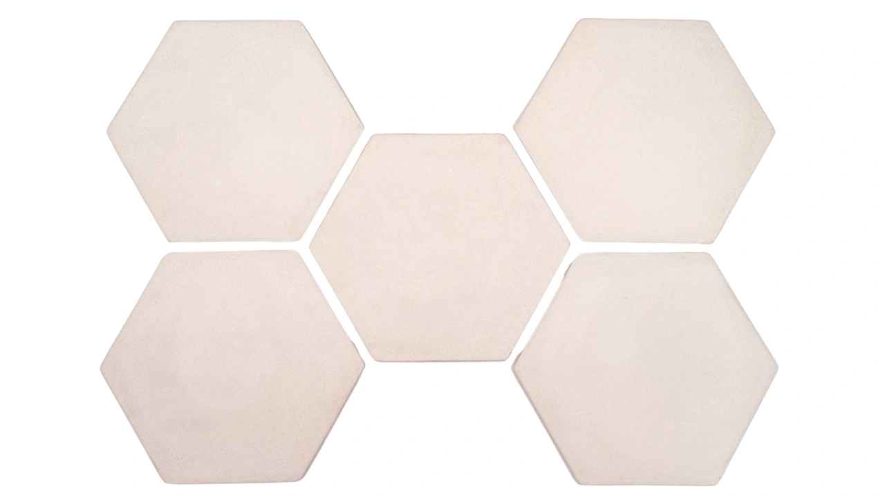 Peças em formato sextavado, que exploram a harmonia dessa figura geométrica, possibilitando a criação de um padrão visual clássico e, ao mesmo tempo, ousado. Rico e limpo, apropriado para dar leveza com diferenciação aos ambientes.