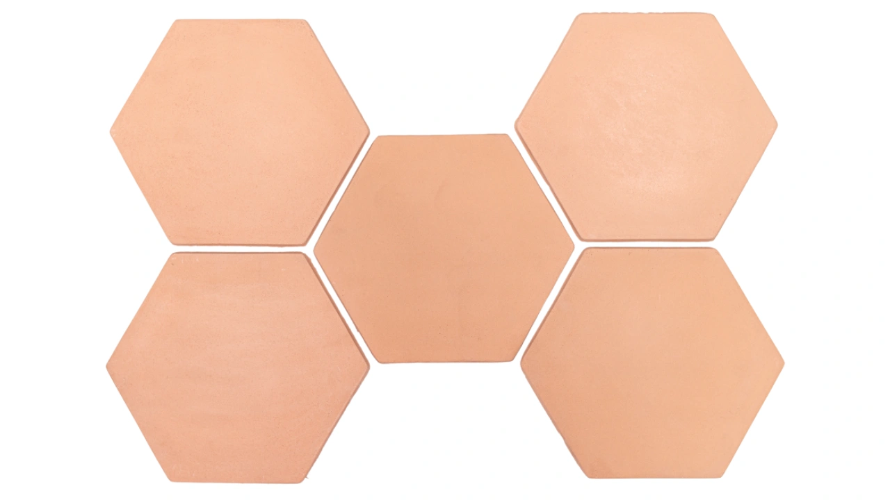 Peças em formato sextavado, que exploram a harmonia dessa figura geométrica, possibilitando a criação de um padrão visual clássico e, ao mesmo tempo, ousado. Rico e limpo, apropriado para dar leveza com diferenciação aos ambientes.