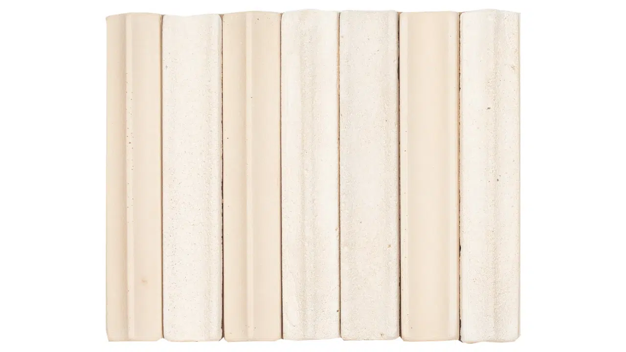 Peças artesanais em base argilosa, alongadas, submetidas a processos de cura e cuidadosa corrosão, agregadas em placas de 23×28 cm que mesclam livremente volumes côncavos (Cavo) e em vórtice (Ápice), misturando também a superfície homogênea da versão Anciano ao toque rústico da versão Sedale, para criar um mosaico com profundidade, textura e movimento únicos.