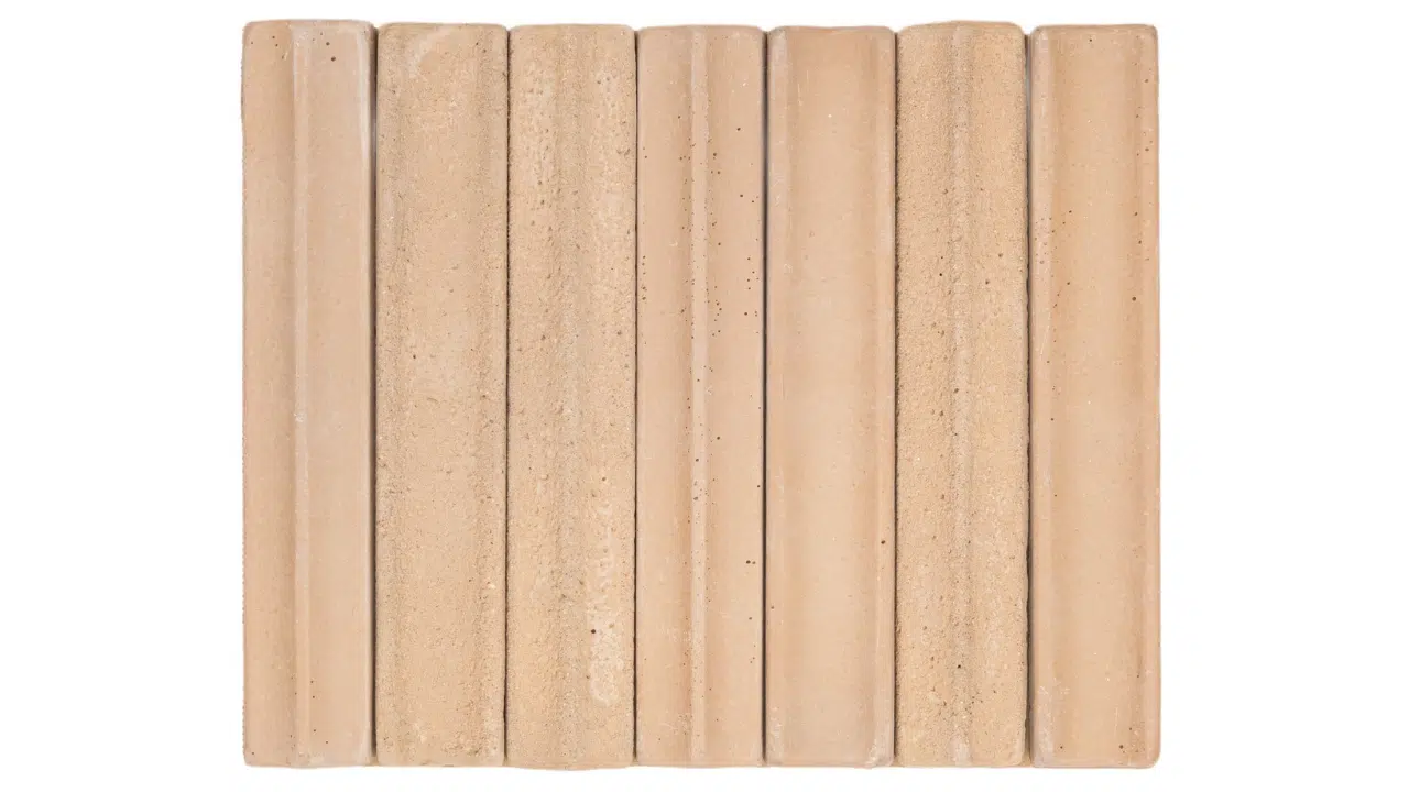 Peças artesanais em base argilosa, alongadas, submetidas a processos de cura e cuidadosa corrosão, agregadas em placas de 23×28 cm que mesclam livremente volumes côncavos (Cavo) e em vórtice (Ápice), misturando também a superfície homogênea da versão Anciano ao toque rústico da versão Sedale, para criar um mosaico com profundidade, textura e movimento únicos.